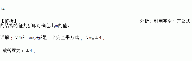 若4x2-mxy+y2是一个完全平方式,那么m的值是_________.