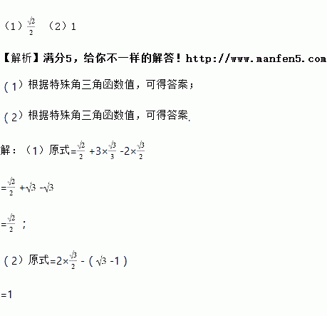 (1)cos45º+3 tan 30º2 sin 60º ![]()