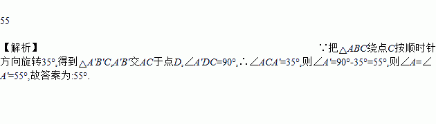 如图,把△ABC绕点C按顺时针方向旋转35°,得到△A′B′C,A′B′交AC于点D,若∠A′DC=90°,则∠A=____°.