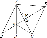 (2)过A作AH⊥BE于H点,由AB=AC得∠ABC=∠ACB,BH=EH,则∠ABF=∠ACF,所以∠ACF=∠AEG,则∠GFC=∠EAG=60°,利用三角形外角性质得∠GFC=∠FBC+∠FCD,则∠FBC=30°,于是BF=2FD=2,BD=