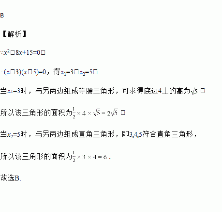 已知三角形两边的长分别是4和3,第三边的长是一元二次方程x2﹣8x+15=0的一个实数根,则该三角形的面积是( )