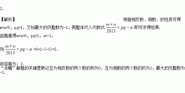 已知m、n互为相反数,p、q互为倒数,且为最大的负整数,则代数式 的值为__________.