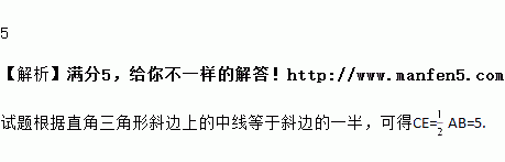 如图,在Rt△ABC中,E是斜边AB的中点,若AB=10,则CE=____.