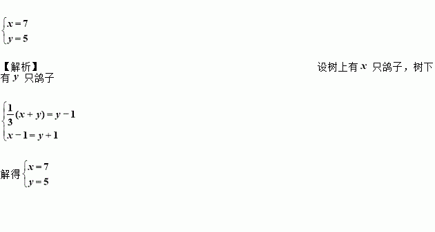 ,若从我们中飞下去一只鸽子,则树上、树下的鸽子就一样多。”你知道树上、树下各有多少只鸽子?