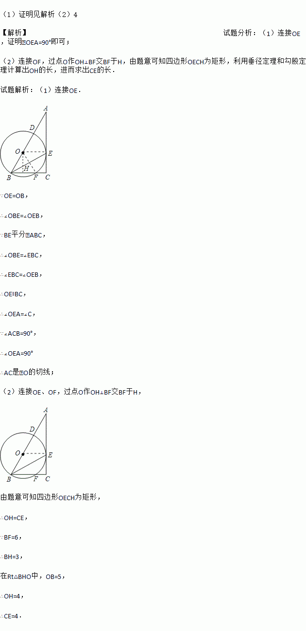 (2)若BF=6,⊙O的半径为5,求CE的长.