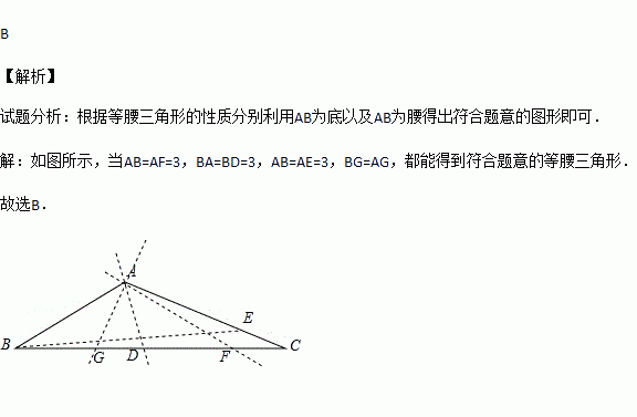 已知△ABC的三条边长分别为3,5,7,在△ABC所在平面内画一条直线,将△ABC分割成两个三角形,使其中有一个边长为3的等腰三角形,则这样的直线最多可画( )