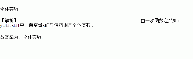 函数y=-3x+1中,自变量x的取值范围是_____;