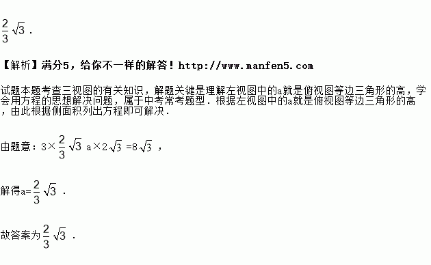 一个正三棱柱的三视图如图所示,若这个正三棱柱的侧面积为,则的值为 .