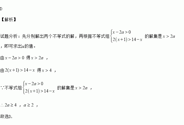 若关于x的不等式组的解集是,则a的取值范围是( )