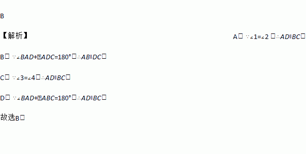 A. ∠1=∠2 B. ∠BAD+∠ADC=180° C. ∠3=∠4