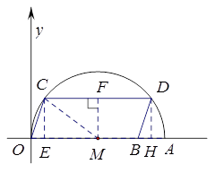 如图,在平面直角坐标系中,点A的坐标是(10,0),点B的坐标是(8,0),点C、D在以OA为直径的半圆M上,且四边形OCDB是平行四边形,求C的坐标.(10分)