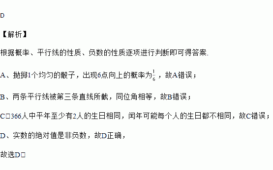 D. 实数的绝对值是非负数