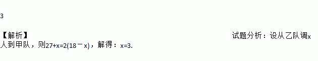 学校组织植树活动,已知在甲处植树的有27人,在乙处植树的有18人。如果要使在甲处植树的人数是乙处植树人数的2倍,需要从乙队调 ___人到甲队。