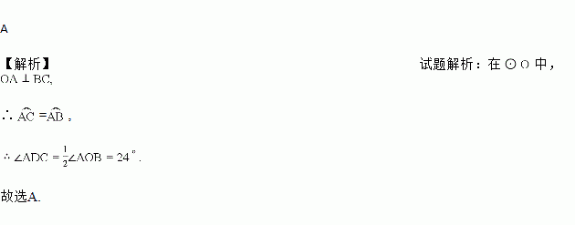 如图,在⊙O中,OA⊥BC,∠AOB=48°,D为⊙O上一点,则∠ADC的度数是( )