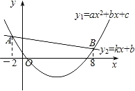 已知二次函数y1=ax2+bx+c(a≠0)与一次函数y2=kx+b(k≠0)的图象相交于点A(﹣2,4),B(8,2)(如图所示),则能使y1>y2成立的x的取值范围是 .