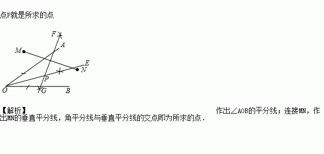 求作:点P,使点P在∠AOB的平分线上,且PM=PN.(要求:用尺规作图,保留作图痕迹,不写作法)