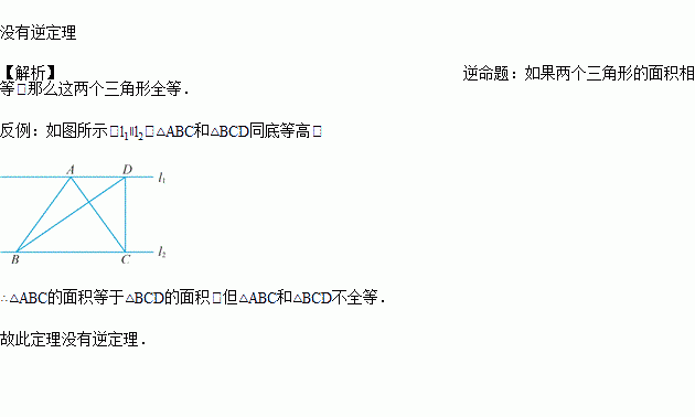 举反例说明定理“全等三角形的面积相等”没有逆定理.