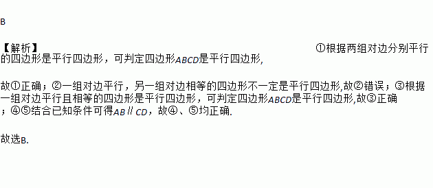 在四边形ABCD中,AD∥BC,分别添加下列条件:①AB∥CD;②AB=CD;③AD=BC;④∠B=∠D;⑤∠A=∠C,其中能使四边形ABCD成为平行四边形的条件有( )