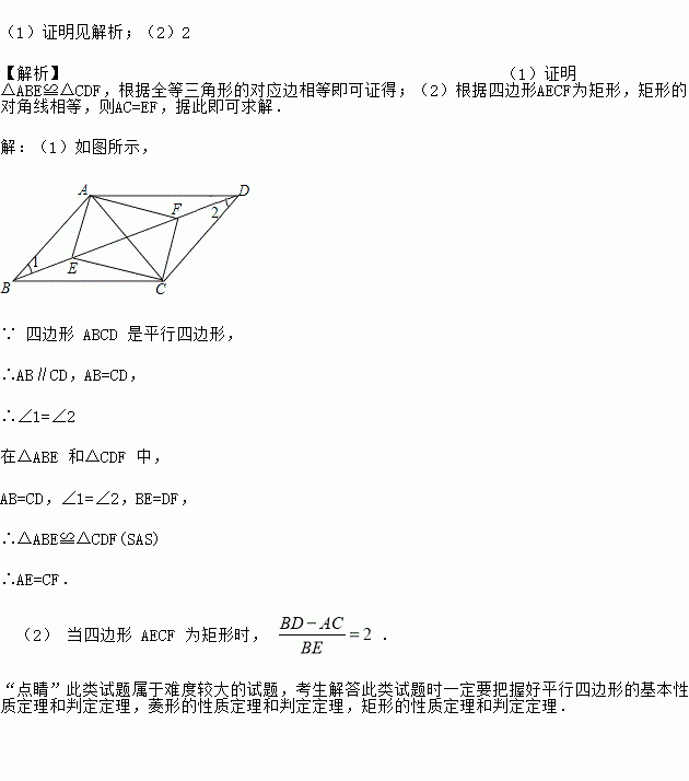 (1)求证:AE=CF;