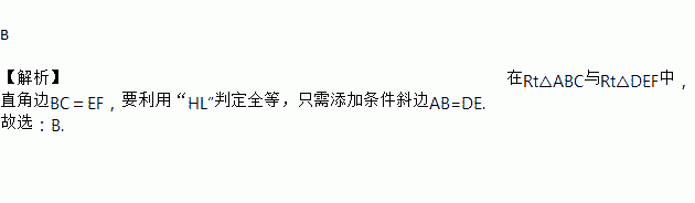 如图,AC⊥BE于点C,DF⊥BE于点F,且BC=EF,如果添上一个条件后,可以直接利用“HL”来证明△ABC≌△DEF,则这个条件应该是( )
