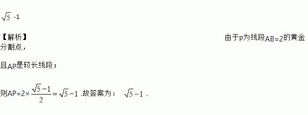 已知P是线段AB的黄金分割点,AP>PB,AB=2,则AP=__________.