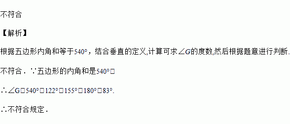如图所示模板,按规定AB,CD的延长线相交成80°的角,因交点不在板上不便测量,工人师傅测得∠BAE=122°,∠DCF=155°,此时AB,CD的延长线相交所成的角是否符合规定?为什么?