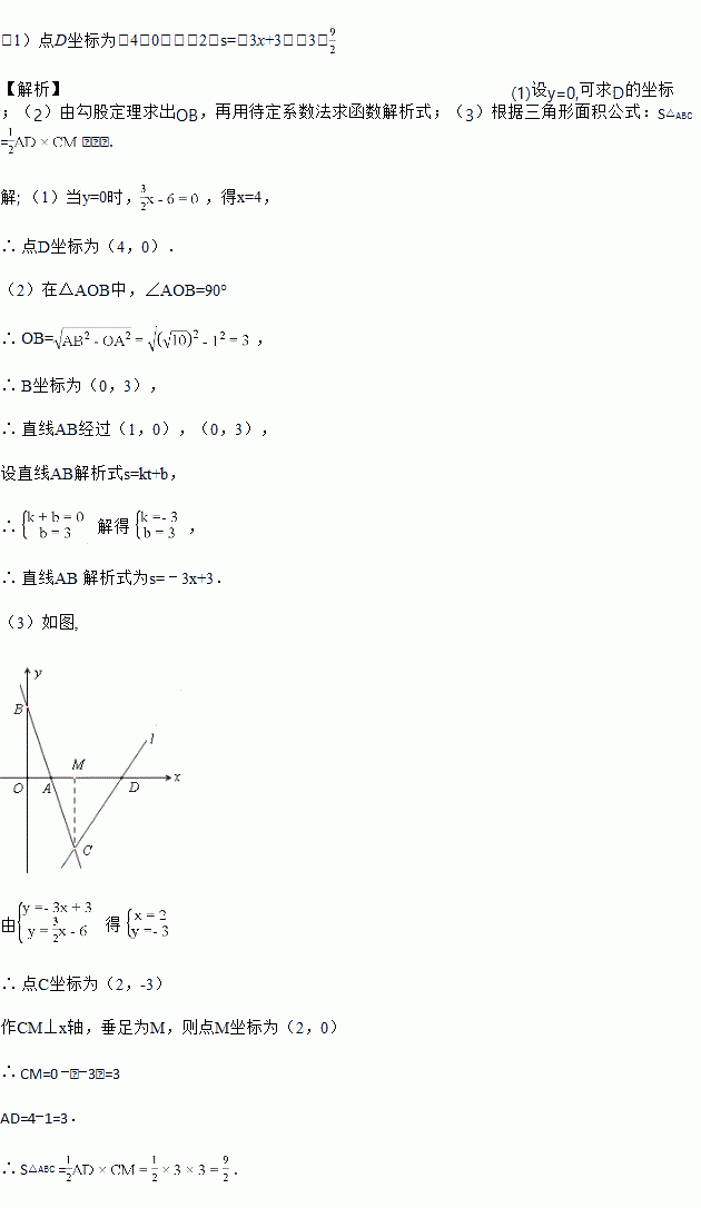 如图,点A(1,0),点B在y轴正半轴上,直线AB与直线l:y=相交于点C,直线l与x轴交于点D,AB=.