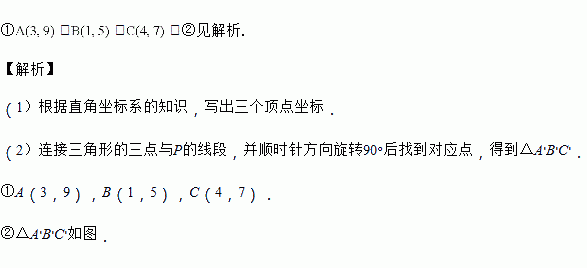 如图:①写出的顶点坐标.②画出以点为旋转中心,沿顺时针方向旋转后的.
