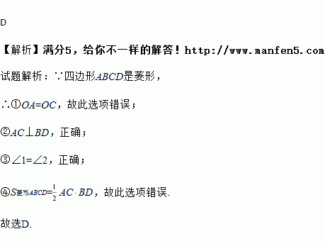 ①OA=OD,②AC⊥BD,③∠1=∠2,④S菱形ABCD=AC•BD.