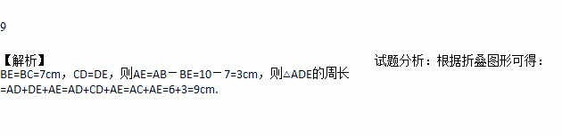 如图,在三角形纸片ABC中,AB=10,BC=7,AC=6,沿过点B的直线折叠这个三角形,使顶点C落在AB边上的点E处,折痕为BD,则△AED的周长等于____.