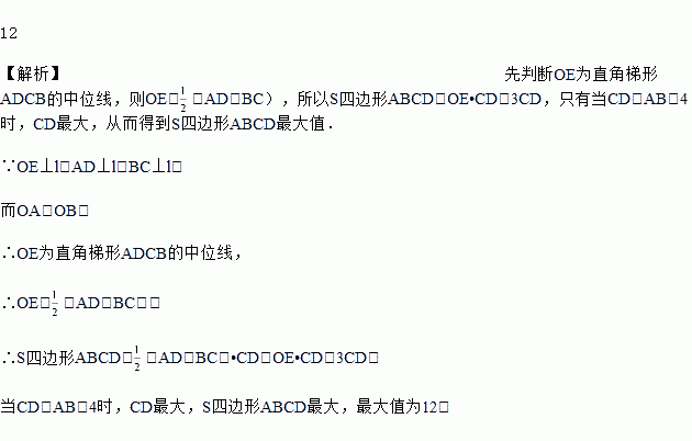 如图,以为直径的的圆心到直线的距离,的半径,,直线不垂直于直线,过点、分别作直线的垂线,垂足分别为点、,则四边形的面积的最大值为___________.