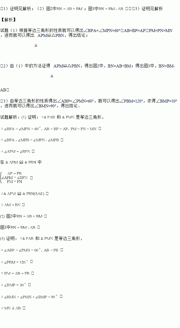 如图1,点M为直线AB上一动点,,都是等边三角形,连接BN