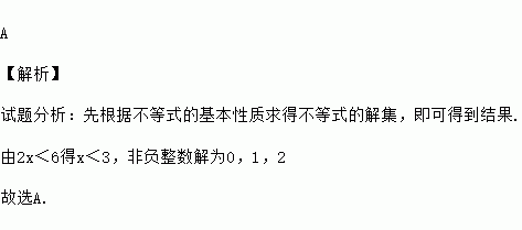 不等式2x<6的非负整数解为( )