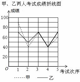 | 甲成绩 | 90 | 40 | 70 | 40 | 60 |