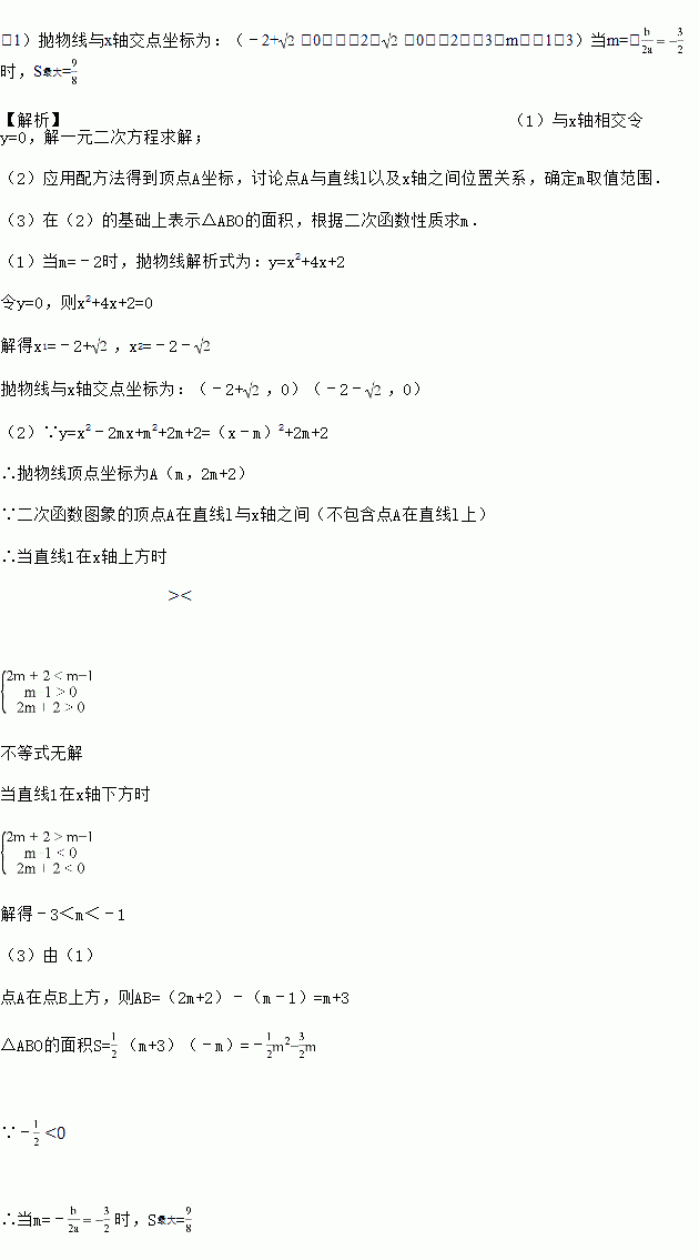 (3)在(2)的条件下,设二次函数图象的对称轴与直线l相交于点B,求△ABO的面积最大时m的值.