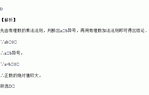 已知两个有理数a,b,如果ab<0且a+b>0,那么( )