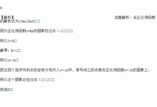若正比例函数的图象经过点(﹣1,2),则这个图象必经过点( )