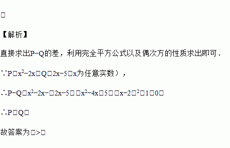 已知P=x2-2x,Q=2x-5(x为任意实数),则P,Q的大小关系是P__________Q(填“>”或“<”).