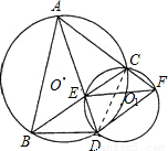 又在⊙O1中,∠FCD=∠FED,∠FED=∠ADB,