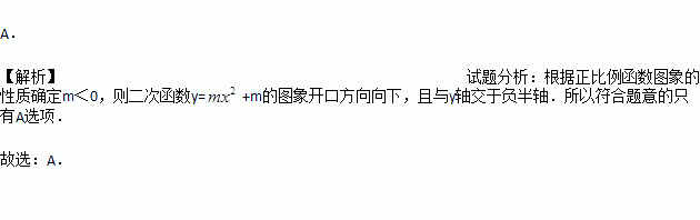 若正比例函数y=mx(m≠0),y随x的增大而减小,则它和二次函数y=mx2+m的图像大致是( )