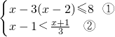 解:(1)方程的两边同乘(x-2),得:1=x-1-3(x-2),