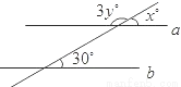 如图,直线a与直线b互相平行,则|x﹣y|的值是( )