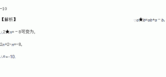 若“★”是新规定的某种运算符号,设a★b=ab+a﹣b,则2★n=﹣8,则n=_______.