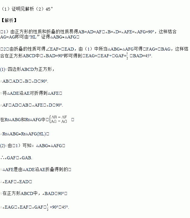 如图,四边形ABCD是正方形,E是线段CD上的点,将△ADE沿AE对折得到△AFE,直线EF交边BC于点G,连接AG.