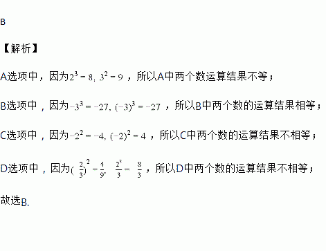 A. 23和32 B. ﹣33和(﹣3)3 C. ﹣22和(﹣2)2 D. 和