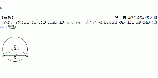 如图将半径为2cm的圆形纸片折叠后,圆弧恰好经过圆心O,则折痕AB的长为( )