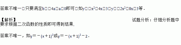 请选择一组你喜欢的a、b、c的值,使二次函数y=ax2+bx+c(a≠0)的图象同时满足下列条件:(1)开口向下;(2)当x<2时,y随x的增大而增大;当x>2时,y随x的增大而减小,这样的二次函数的解析式可以是____________.
