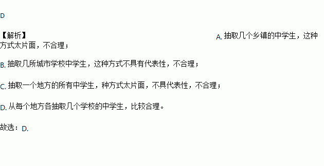 D. 在我县所有初中学校三个年级中各抽取1个班的学生