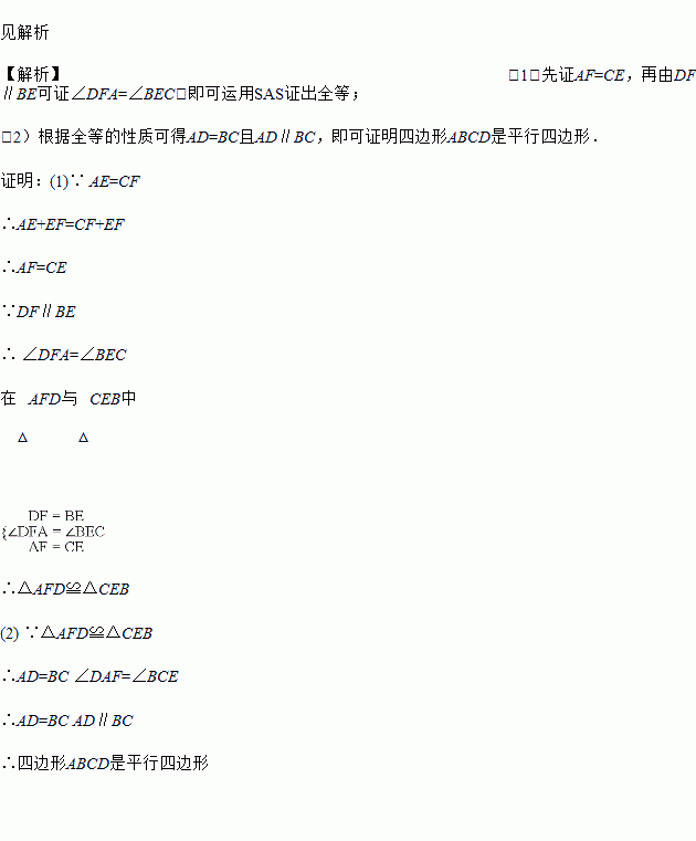 求证:(1)△AFD≌△CEB;(2)四边形ABCD是平行四边形.
