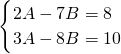分析:本题根据关键语“等式(2A-7B)x+(3A-8B)=8x+10对一切实数x都成立”,只要让等式两边x的系数和常数分别相等即可列出方程组求解.
